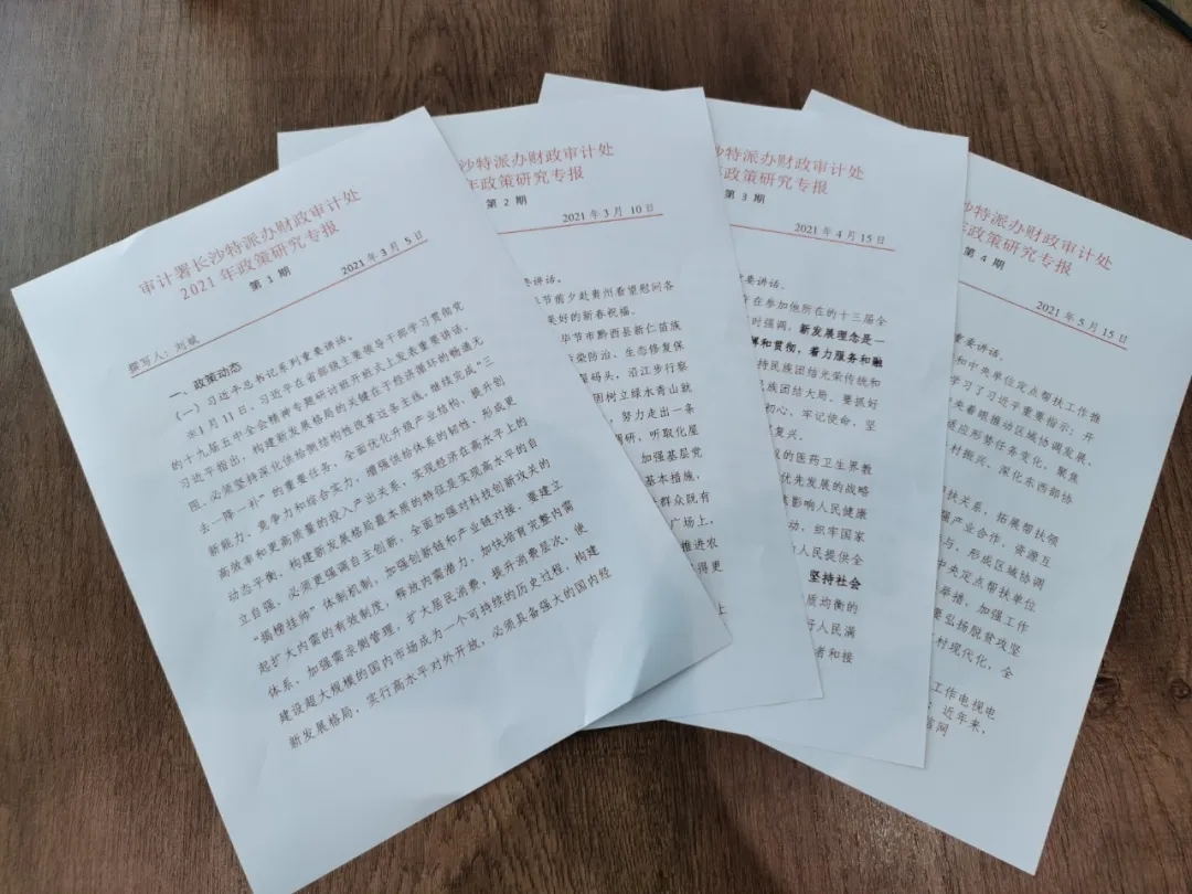 财政审计处每月安排一名青年干部收集中央和地方出台的重大政策以及改革动向,并结合审计工作实践,提出需要关注的重要事项,形成政策研究专报,在处室每月的业务会议或者党支部会议上学习交流,促进形成良好的政策研究氛围,同时为下一步更好开展工作提供充分的政策储备。