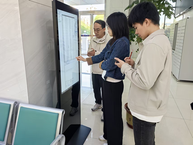 图为审计人员现场查看智慧法庭建设情况