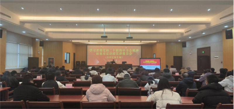 为深入学习宣传贯彻党的二十届四中全会精神,根据工作部署,桂林市审计局于近日开展学习贯彻党的二十届四中全会精神宣讲活动。活动邀请桂林市理论宣讲团成员、市委党校党史党建教研室主任、副教授孙敏进行全会精神宣讲,全局干部职工参加。